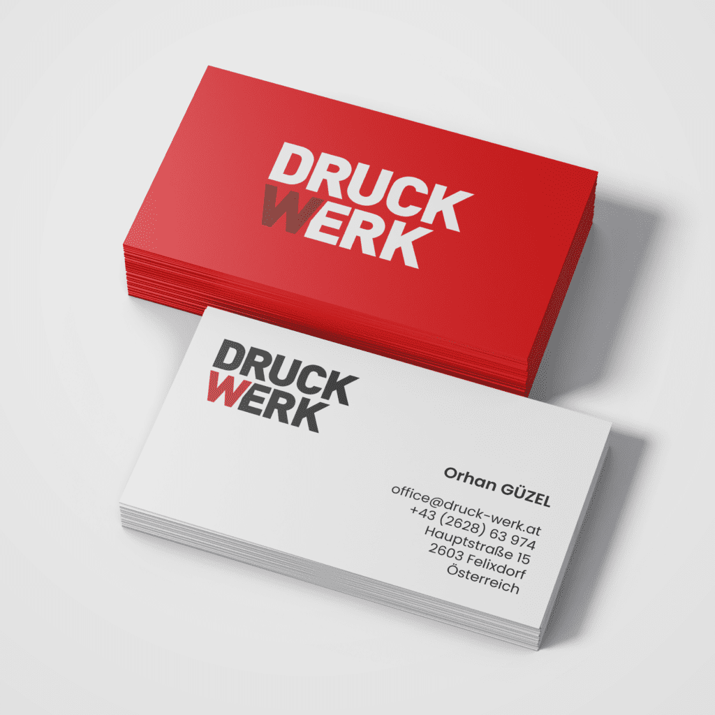 Druck Werk gestaltet Ihr Firmenimage – von Visitenkarten bis Werbematerialien. Hochwertig, individuell und professionell!